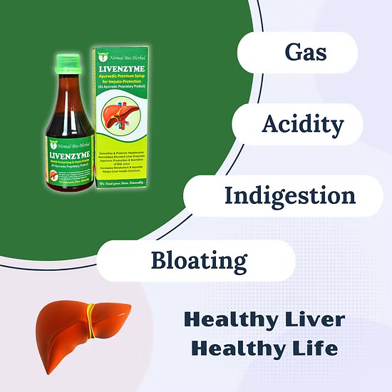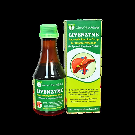 Livenzyme Syrup (Ayurvedic Liver Tonic) is an effective herbal formulation of ancient herbs that have with no side effects. It is a researched proprietary Ayurvedic product of Nirmal Bio Herbal Products. It is a complete tonic that allows the liver to function at its optimum efficiency.